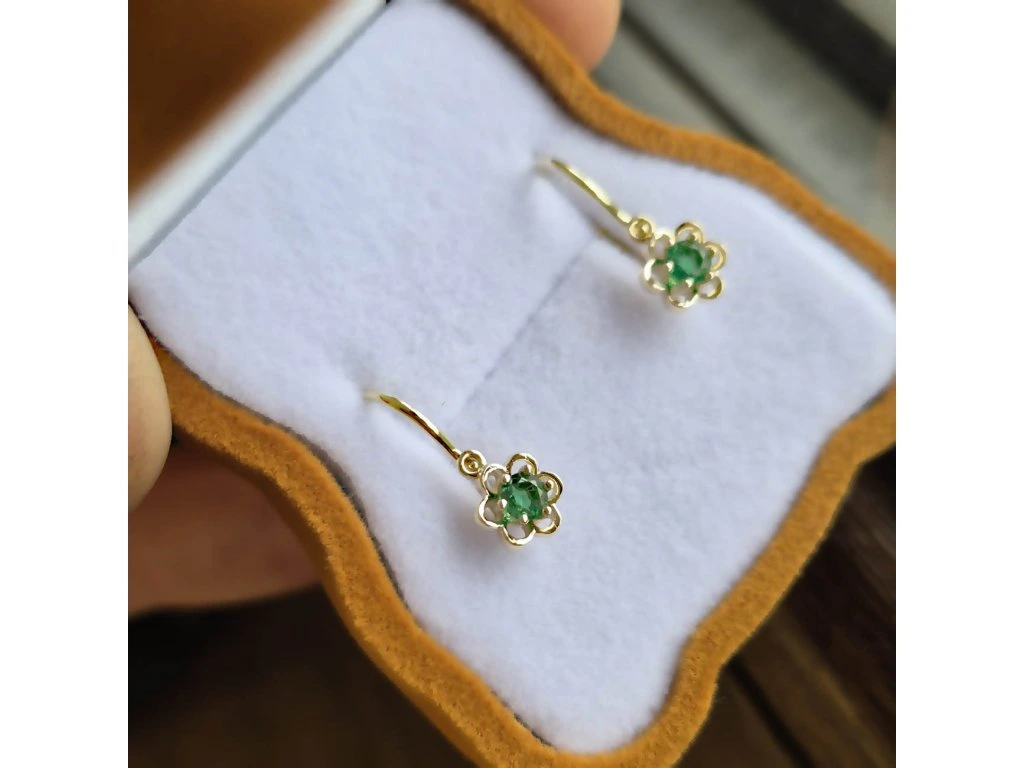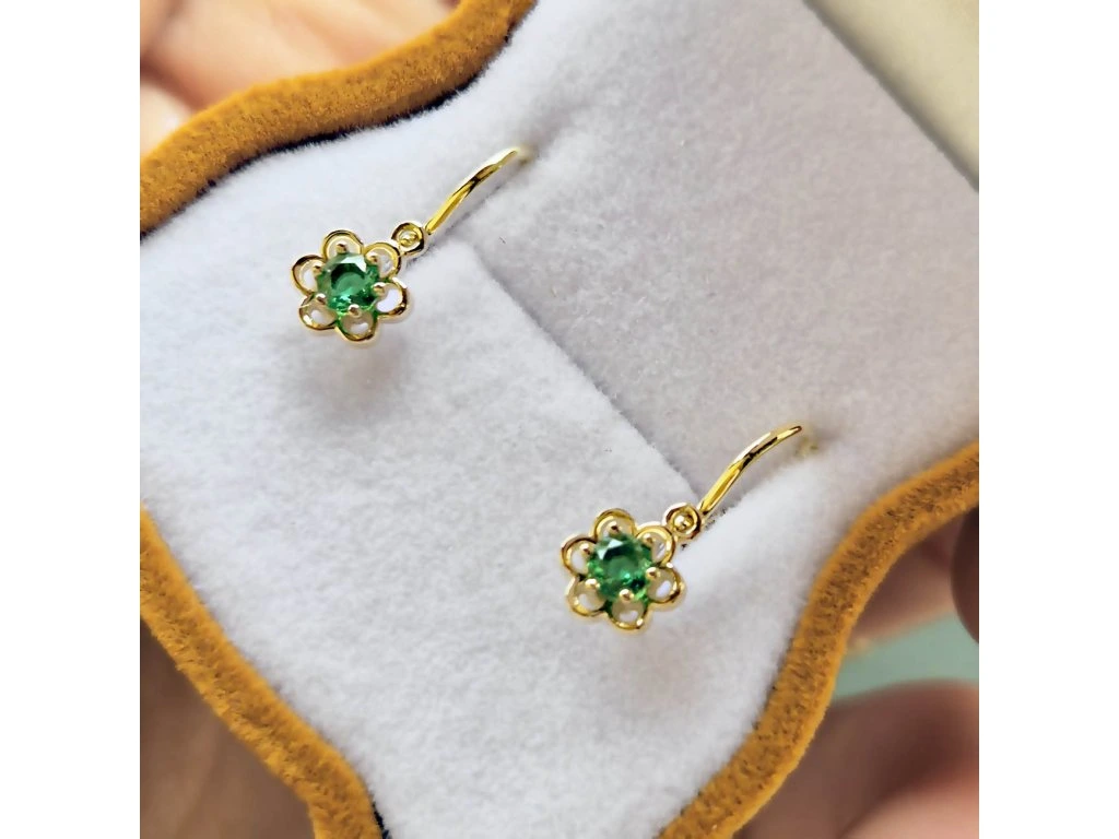 Detské náušničky v tvare kvetinky so smaragdom.
