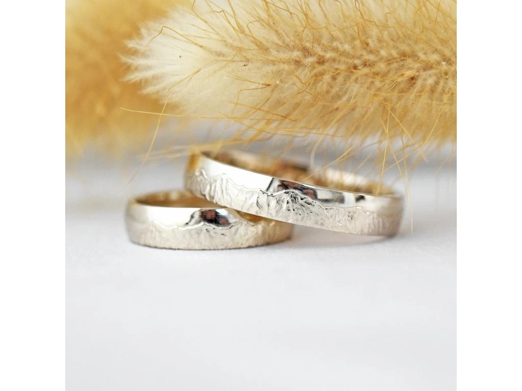 Tento výnimočný pár svadobných obrúčok je ideálny pre páry, ktoré milujú prírodu, turistiku a hory. Ich dizajn zachytáva detailnú panorámu hôr (napríklad Vysokých Tatier), ktorá je vyrytá po celom obvode. Každá obrúčka je ručne zhotovovaná na objednávku, čo zaručuje jej originalitu a precízne spracovanie.