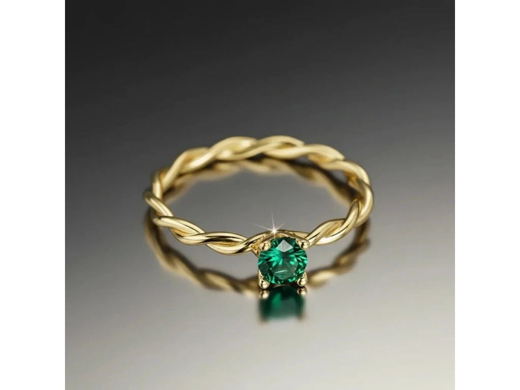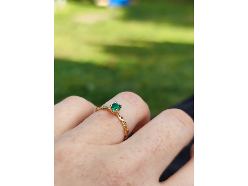 Zapletaný zlatý prsteň so smaragdom.