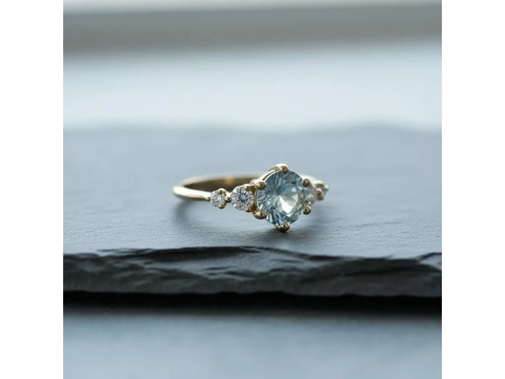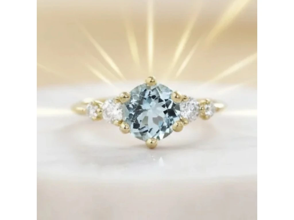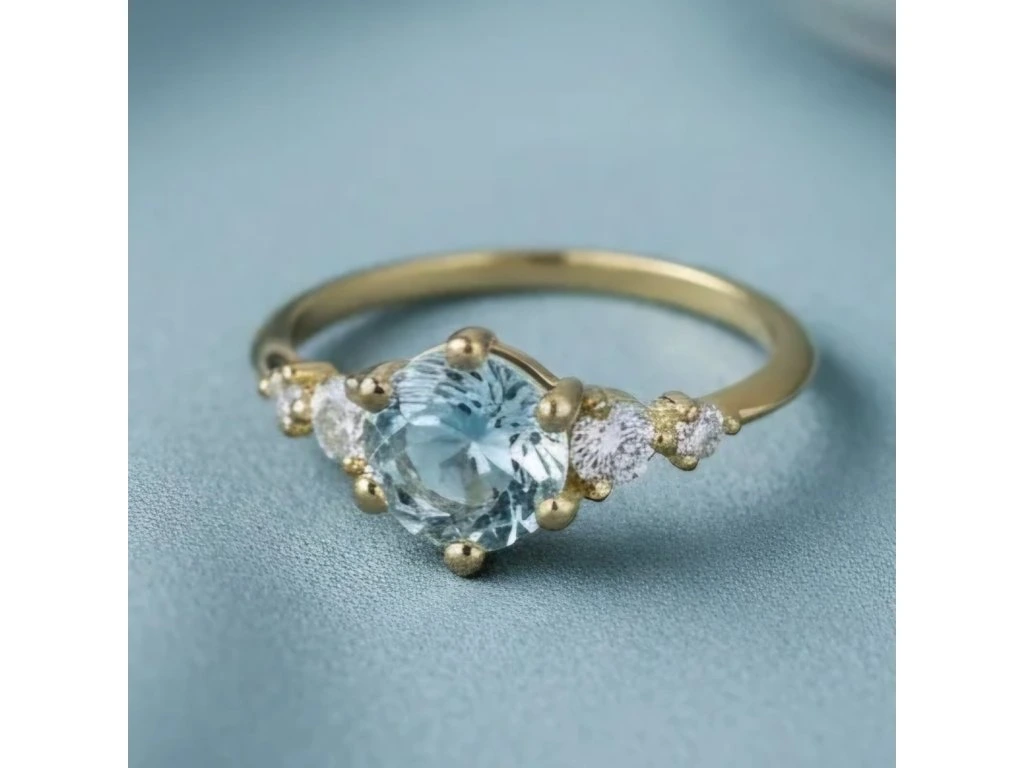 Zlatý akvamarínový prsteň