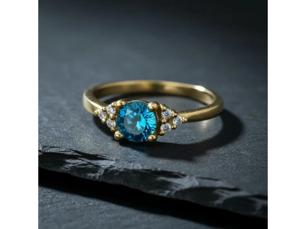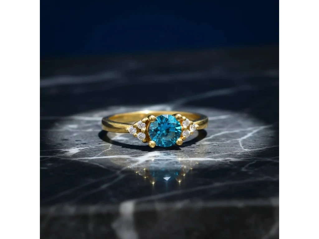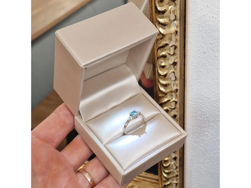 Zásnubný prsteň s centrálnym kameňom tyrkysovým Moisanitom, veľkosti 5mm.
