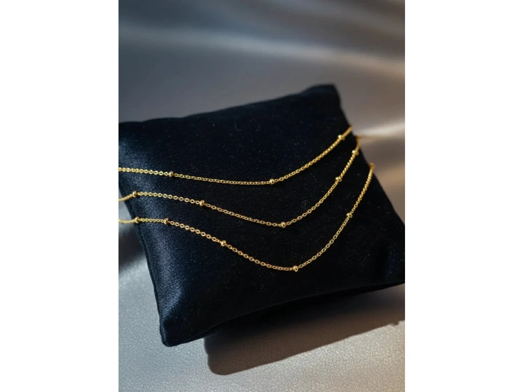 Zlatá retiazka s malými guličkami.