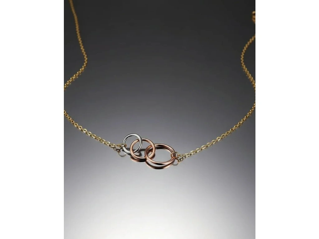 Zlatá retiazka s 3 kruhmi väčší, menší najmenší v troch farbách zlata.