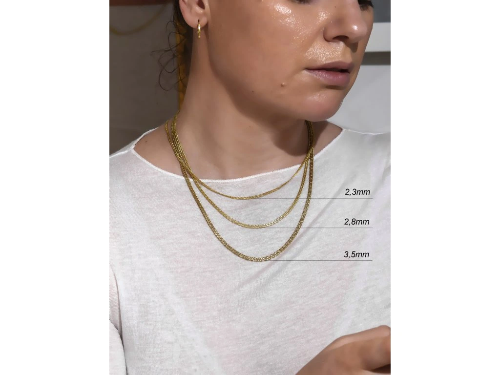 Zlatá retiazka je široká 2,3mm v sile drôtu 0,3mm.