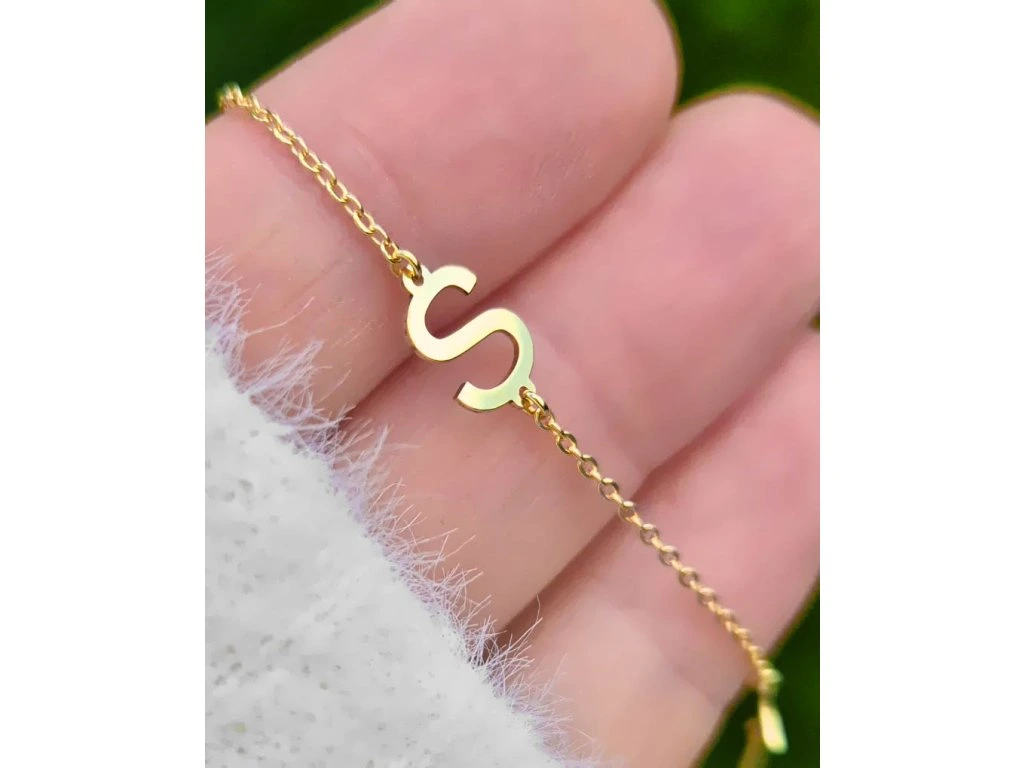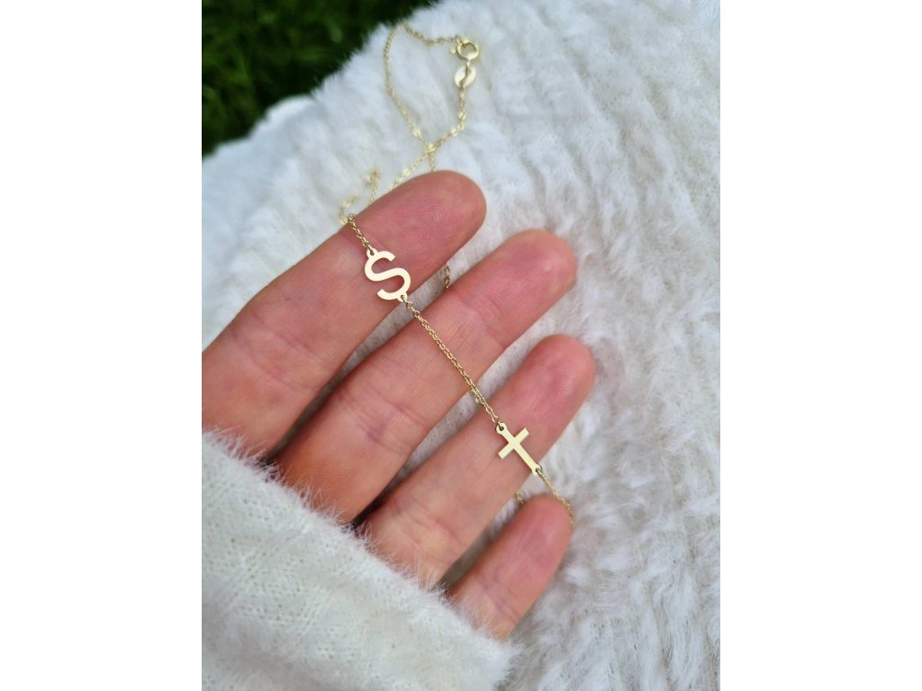 Zlatá retiazka s písmenom veľkosť písmena 7mm, hrúbka 0,5mm.