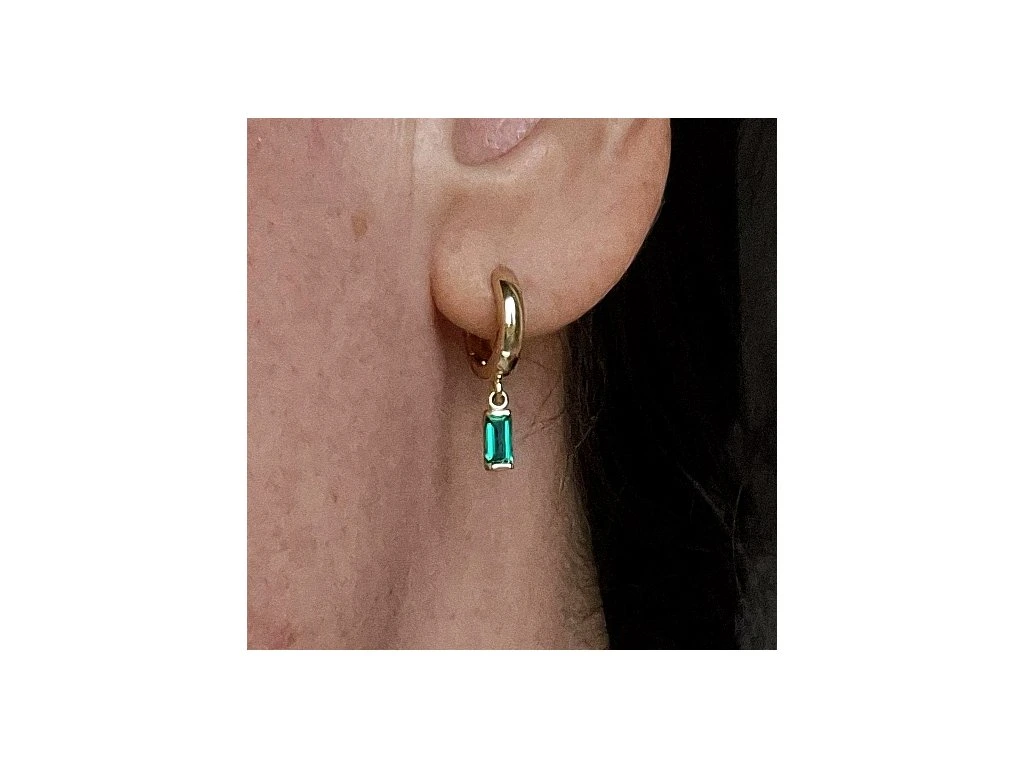 Zlaté kruhové náušnice so Smaragdovým príveskom.