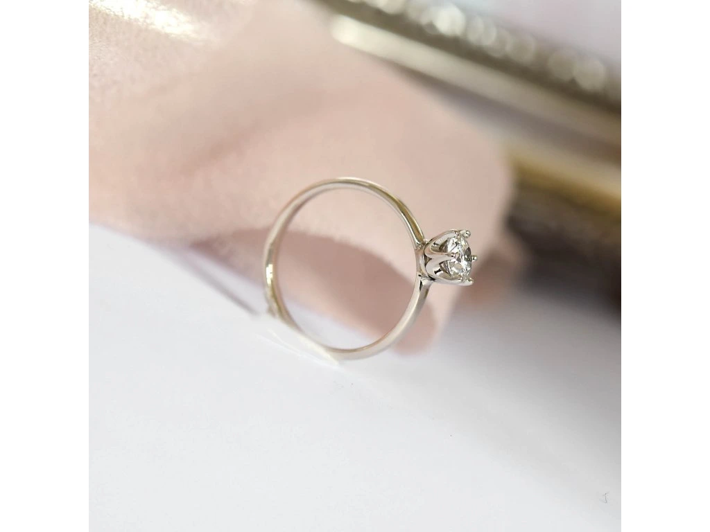 Zlatý prsteň s diamantom 0,5ct, čo je okolo 5mm.