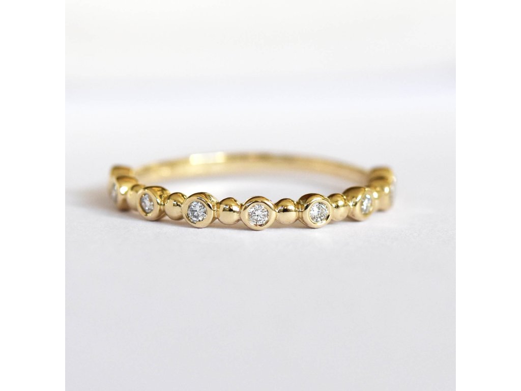 Zlatý prsteň s moisanitmi veľkosti 1,5mm, 9ks. Celkovo má prsteň 0,126ct.