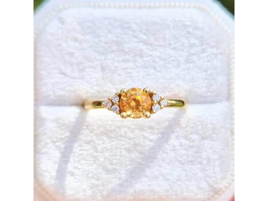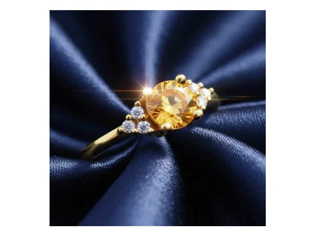 Zlatý prsteň s centrálnym kameňom prírodným žltým Zafírom, veľkosti 5mm.