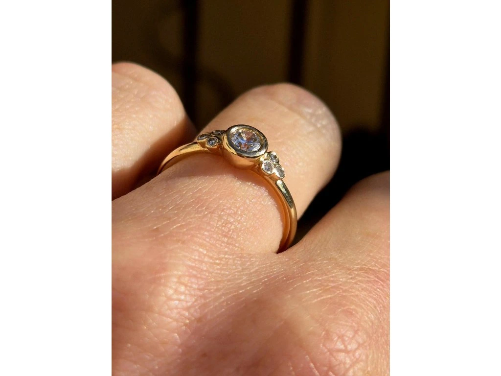 - Centrálny Briliant: Prsteň zdobí nádherný lab-grown diamant s presnou váhou 0,40 karátu. Je zasadený v štýlovom lunetovom (bezel) osadení. Toto osadenie nielenže kameň chráni, ale aj opticky zväčšuje jeho priemer a zvýrazňuje jeho iskru.